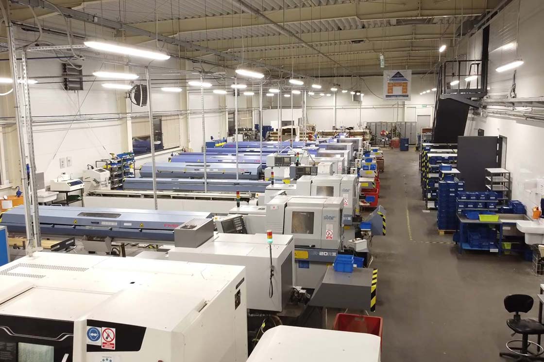 We are equipped with a fleet of single-spindle sliding head CNC lathes, up to diameter 38, multi spindles up to diameter 38 and single-spindle CNC lathes with 12 tool-turret for extreme precision machining up to diameter 100.